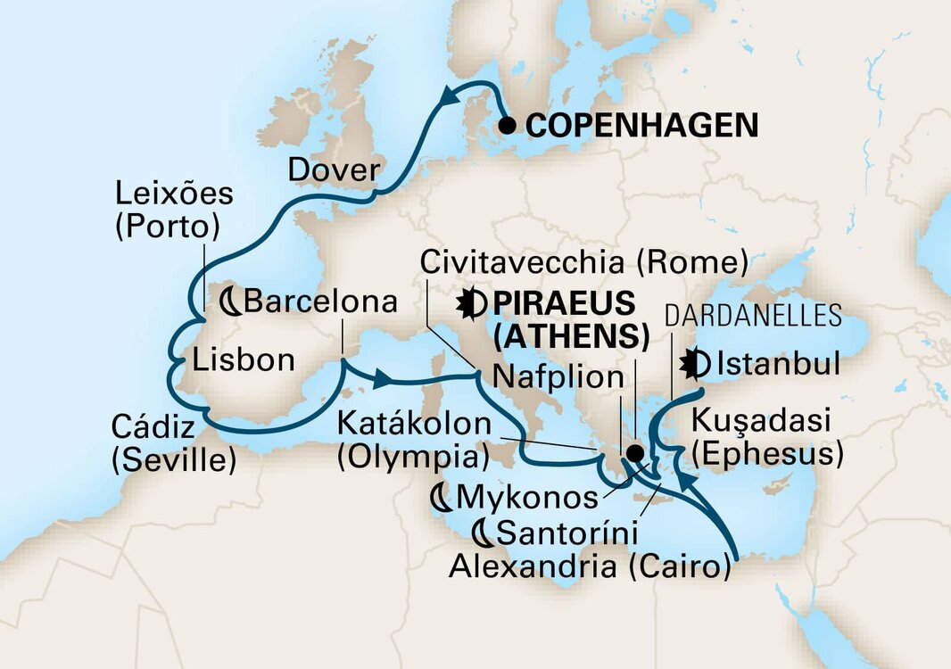 The iconic Little Mermaid statue sits serenely by the waterfront, while Tivoli Gardens, one of the world’s oldest amusement parks, offers charming rides and lush gardens in the heart of the city. Your ship will dock at the Port of Copenhagen, which is a 30 minute drive to Copenhagen Airport and a 15 minute drive into the city centre.