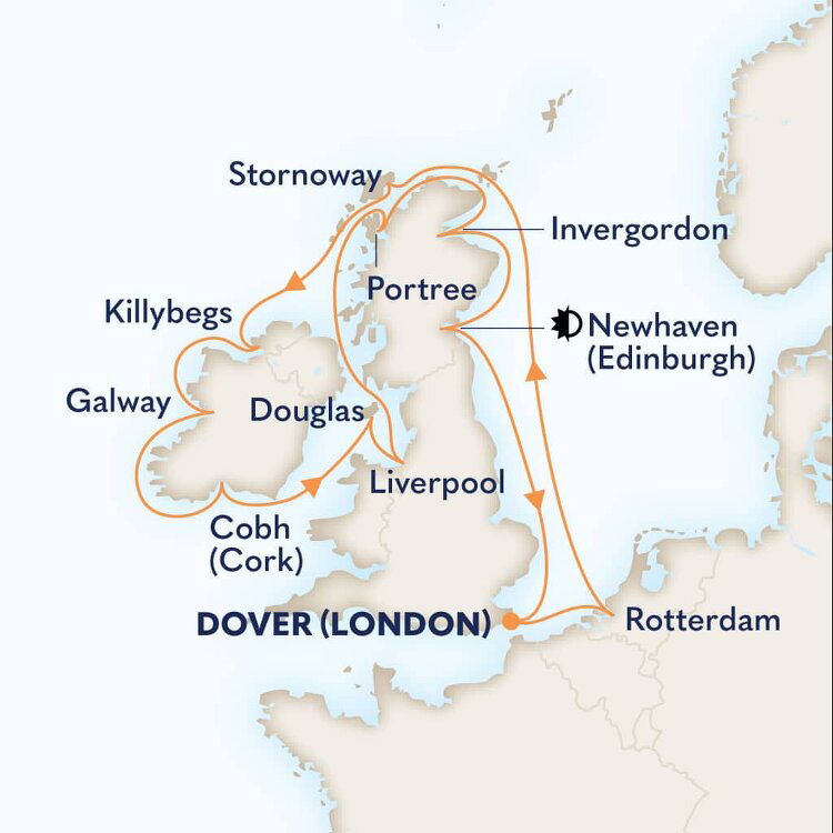 Known as the 'Gateway to England', the southeastern town of Dover is the main transit port between the two sides of the English Channel. This quaint and uniquely British town is famous for its impressive white cliffs, which have inspired many a poet and playwright. Ships will dock at the Dover Cruise Terminal.