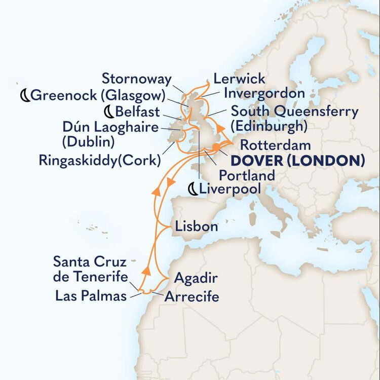 Known as the 'Gateway to England', the southeastern town of Dover is the main transit port between the two sides of the English Channel. This quaint and uniquely British town is famous for its impressive white cliffs, which have inspired many a poet and playwright. Ships will dock at the Dover Cruise Terminal.