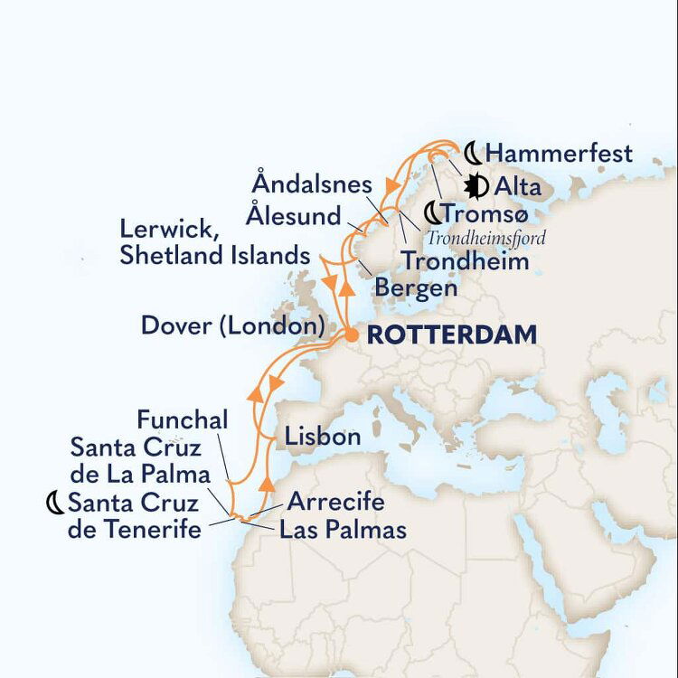 Tucked into the Altafjord, Alta enjoys a warmer, drier climate than other ports in Northern Norway. Rugged landscapes roll down to meet the calm waters of its sheltered harbour, and local Sami culture thrives in one of the world’s most northerly cities. Ships will dock at this port.