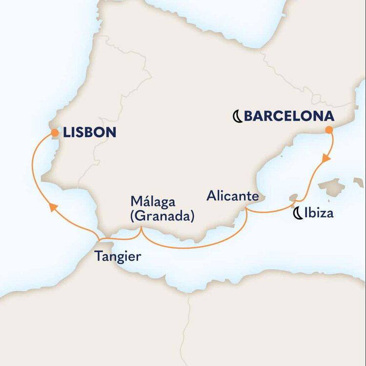 Málaga is the lively capital of the Costa del Sol, famed for its beaches and mild climate. It is a city of narrow streets, whitewashed houses, churches and sunny plazas. Málaga also serves as a popular starting point for excursions to splendid Granada and the famed Alhambra. Ships will dock at the Málaga cruise terminal.