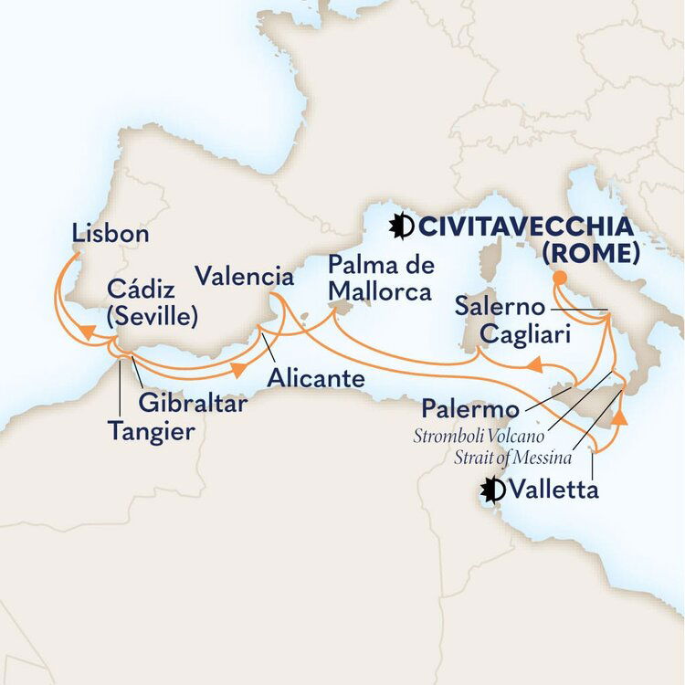 Serving as Rome’s seaport since the 13th century, Civitavecchia is located about an hour (80km/50mi) from the centre of Rome. For guests arriving and departing from the airport in Rome, a transfer to Civitavecchia port should be organised ahead of time with your cruise line. Details will be provided in your travel documentation after booking. The port area itself offers diverse dining options, and inside, facilities include accessible bathrooms, Wi-Fi, and a spacious waiting area. The port also offers complimentary shuttle buses to transfer guests between the ship and the port terminal.