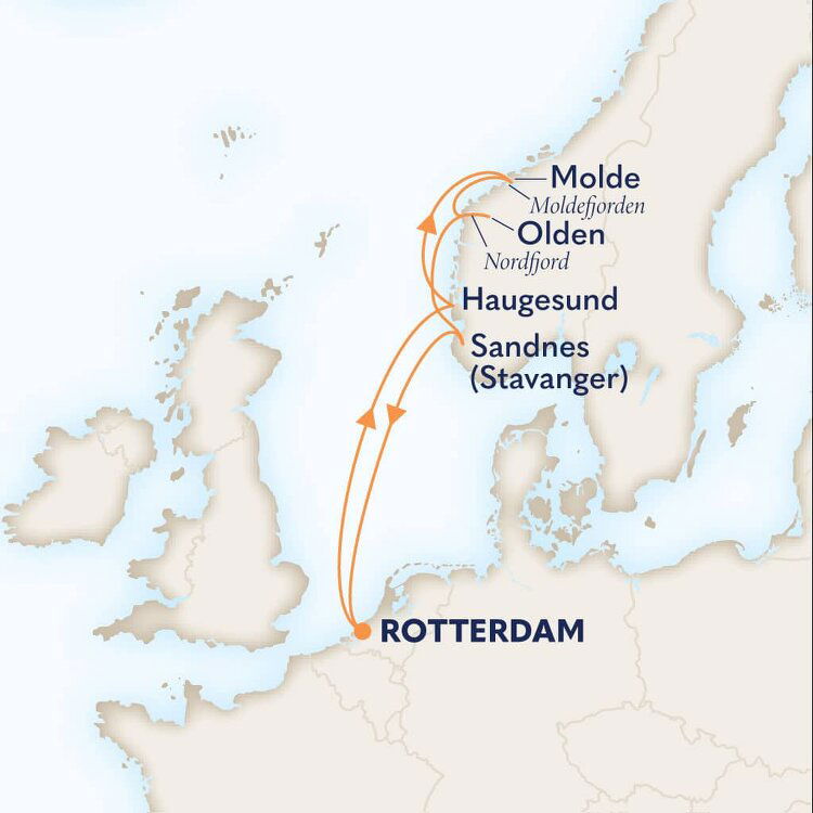 Nordfjord is situated between the largest mainland glacier in Europe and Norway's wildest coast at the western cape. Cruise through this world renowned network of fjords to experience the grandeur of Norway's stunning scenery.