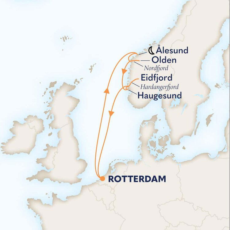 Nordfjord is situated between the largest mainland glacier in Europe and Norway's wildest coast at the western cape. Cruise through this world renowned network of fjords to experience the grandeur of Norway's stunning scenery.