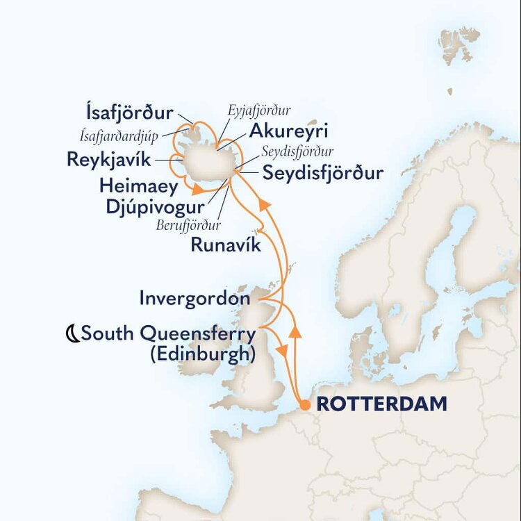 Iceland’s Capital of the North is the gateway to a thrilling land of roaring waterfalls, soaring volcanoes and glorious wildlife. Situated at the head of Eyjafjordur, Iceland's longest fjord and with a backdrop of dramatic snow-covered mountains, Akureyri is Iceland's second largest city. Ships will dock at the pier.