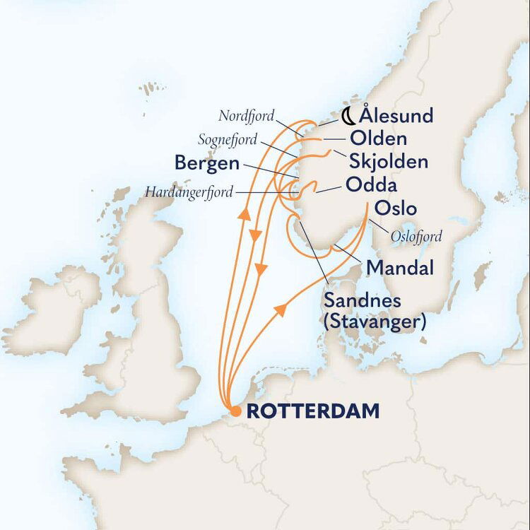 Nordfjord is situated between the largest mainland glacier in Europe and Norway's wildest coast at the western cape. Cruise through this world renowned network of fjords to experience the grandeur of Norway's stunning scenery.