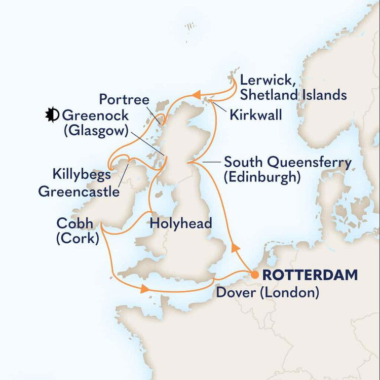 Lerwick, the capital of the Shetland Island Archipelago, offers stone age ruins, heather-covered moors and rugged Scottish highlands. With its dramatic cliffs, Grand Victorian houses, charming Shetland ponies, and Nordic heritage Lerwick allows for hours of entertainment. Smaller ships will dock at the Port of Lerwick, while larger ships will anchor offshore.