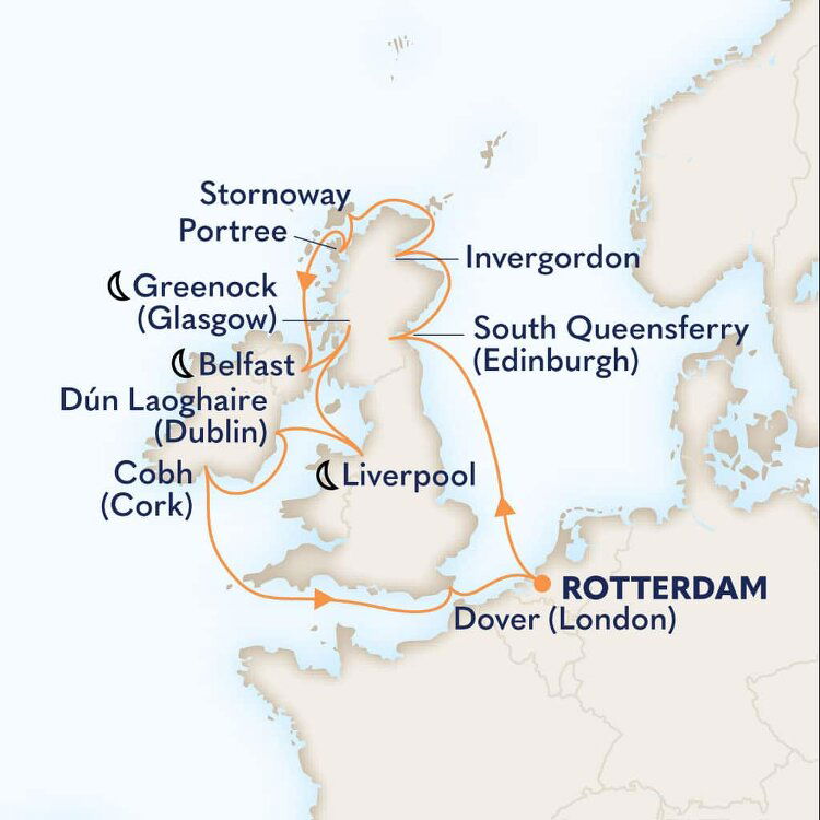 Colourful row houses and red-hulled fishing vessels line the shores of this picturesque port set on the edge of the Outer Hebrides. The gateway to Lewis and Harris Island, Stornoway is a short journey to a natural wonderland of mountains, craggy rocks, moorlands, meadows, and rugged coastlines. Ships will anchor offshore and tender guests to shore.