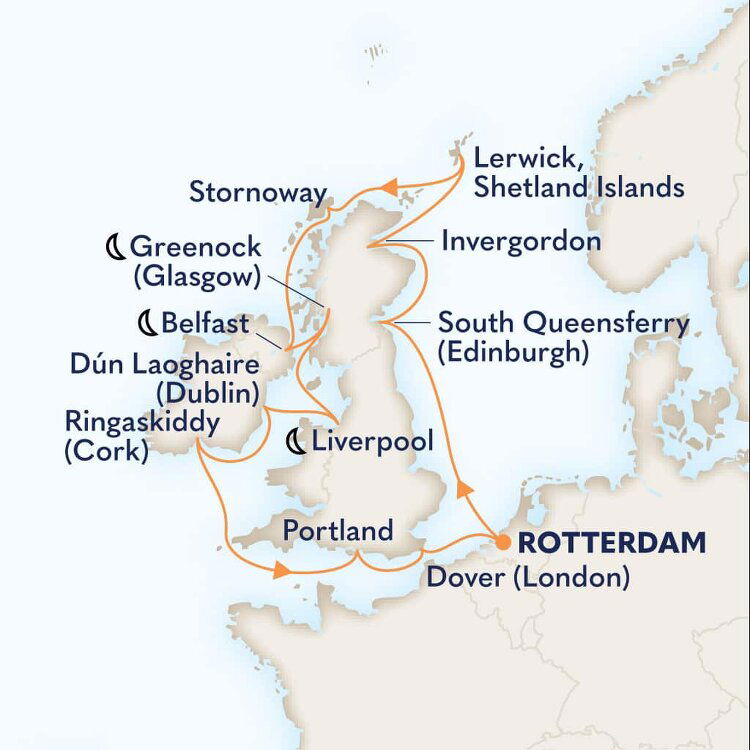 Lerwick, the capital of the Shetland Island Archipelago, offers stone age ruins, heather-covered moors and rugged Scottish highlands. With its dramatic cliffs, Grand Victorian houses, charming Shetland ponies, and Nordic heritage Lerwick allows for hours of entertainment. Smaller ships will dock at the Port of Lerwick, while larger ships will anchor offshore.