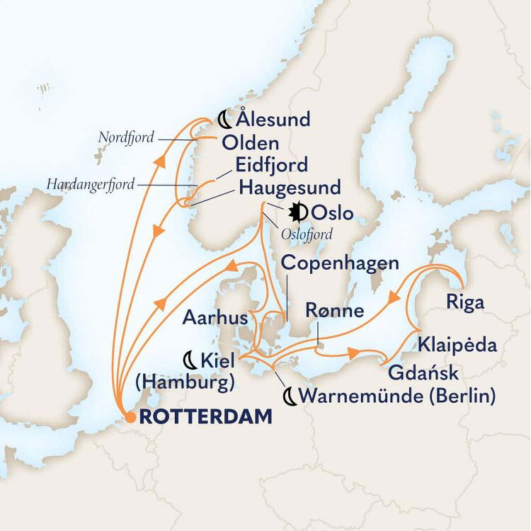 Located at the head of the gorgeous Oslofjord, Norway's capital is encircled by wooded hills and snow capped peaks. Explore the striking Oslo Opera House, where you can walk on the rooftop for harbor views. The Viking Ship Museum showcases remarkably preserved ships from the Viking era, while Vigeland Park features over 200 sculptures by Gustav Vigeland. Visit the Akershus Fortress for a glimpse into medieval history, or stroll along the waterfront Aker Brygge, filled with restaurants and shops.