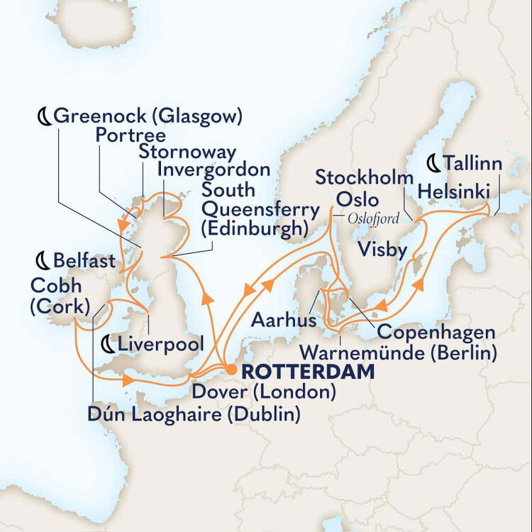 Nestled between the Highlands and the Border Hills, Edinburgh is a gracious city noted for its superb skyline, its impressive collection of architecture and its beautiful parks. Here you'll find the best of central eastern Scotland: spectacular views, rolling hills and castles. Ships will dock at the Port of Leith Cruise Liner Terminal.