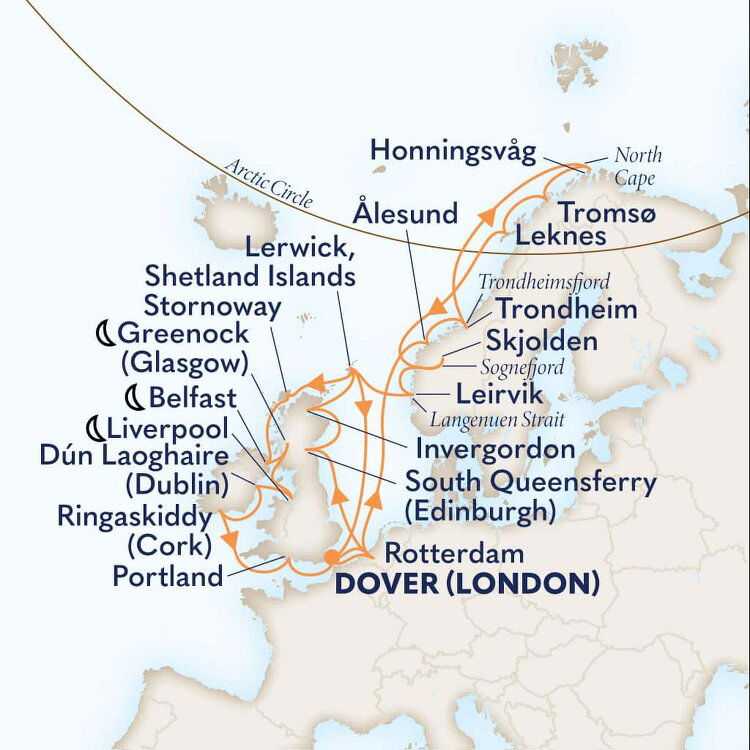 Known as the 'Gateway to England', the southeastern town of Dover is the main transit port between the two sides of the English Channel. This quaint and uniquely British town is famous for its impressive white cliffs, which have inspired many a poet and playwright. Ships will dock at the Dover Cruise Terminal.