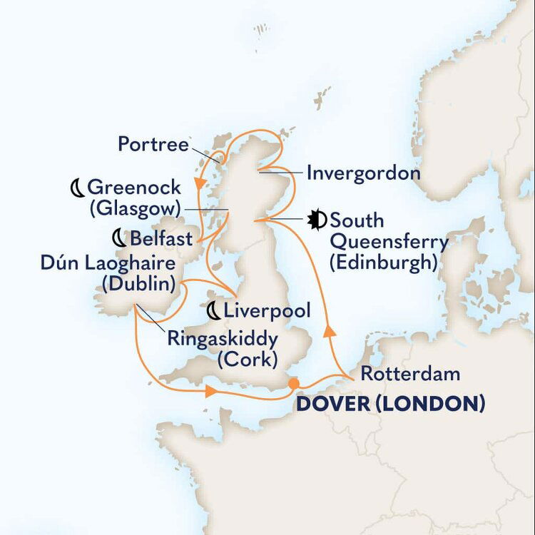 Known as the 'Gateway to England', the southeastern town of Dover is the main transit port between the two sides of the English Channel. This quaint and uniquely British town is famous for its impressive white cliffs, which have inspired many a poet and playwright. Ships will dock at the Dover Cruise Terminal.