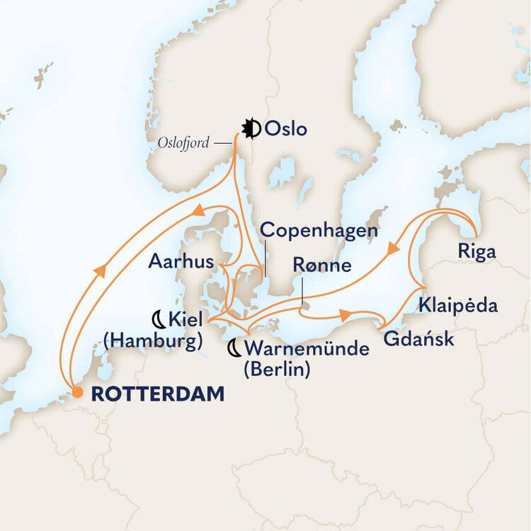 Founded during the Viking Age, Aarhus is a compact and vibrant city perfect for history buffs and lovers of the arts and culture. Located on Jutland's east coast, Aarhus is surrounded by dense forests, and provides easy access to Denmark's scenic Lake District. Ships will dock at this port.