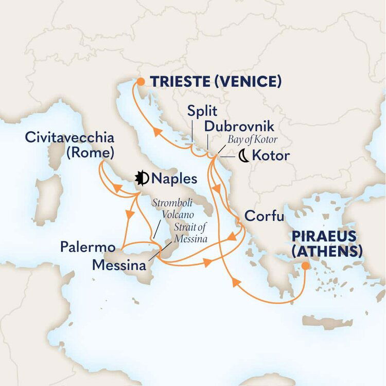 Your ship will dock at the Trieste Cruise Terminal, located right in the heart of the city. This makes it easy to explore Trieste and visit key attractions like Piazza Unità d'Italia, the Roman Theatre, and Miramare Castle which are easily accessible by foot or a short bus ride.