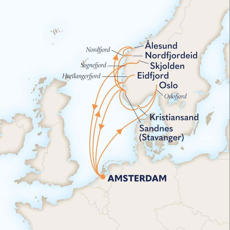 Nordfjord is situated between the largest mainland glacier in Europe and Norway's wildest coast at the western cape. Cruise through this world renowned network of fjords to experience the grandeur of Norway's stunning scenery.