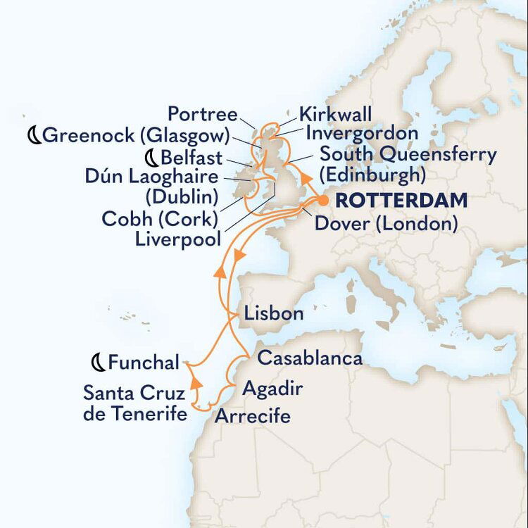 Nestled between the Highlands and the Border Hills, Edinburgh is a gracious city noted for its superb skyline, its impressive collection of architecture and its beautiful parks. Here you'll find the best of central eastern Scotland: spectacular views, rolling hills and castles. Ships will dock at the Port of Leith Cruise Liner Terminal.