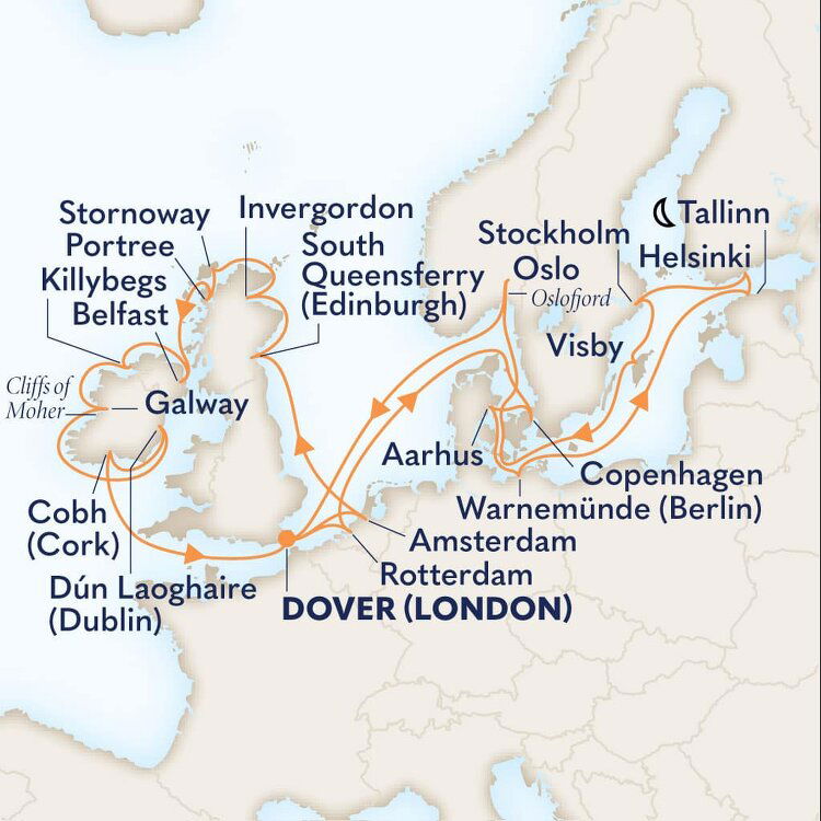 Known as the 'Gateway to England', the southeastern town of Dover is the main transit port between the two sides of the English Channel. This quaint and uniquely British town is famous for its impressive white cliffs, which have inspired many a poet and playwright. Ships will dock at the Dover Cruise Terminal.