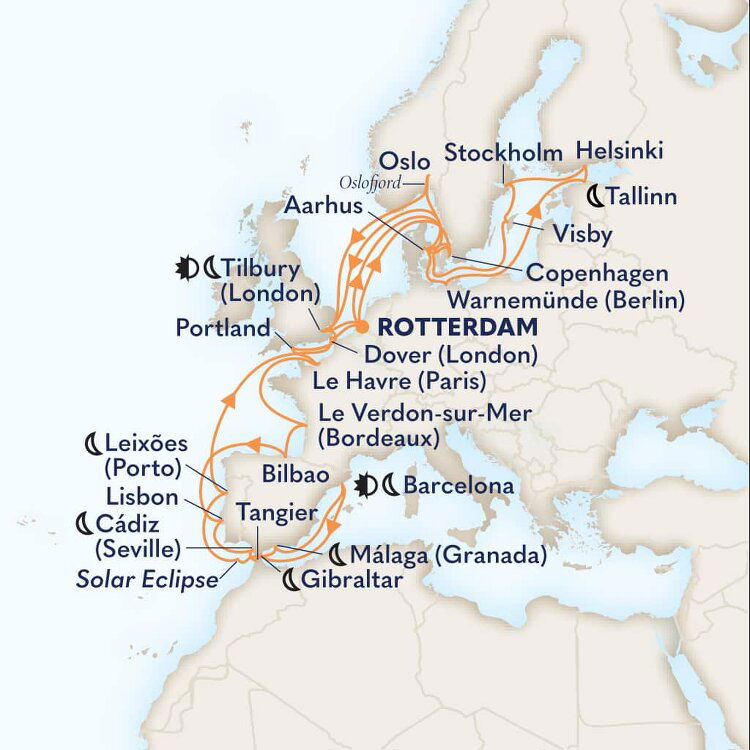 Known as the 'Gateway to England', the southeastern town of Dover is the main transit port between the two sides of the English Channel. This quaint and uniquely British town is famous for its impressive white cliffs, which have inspired many a poet and playwright. Ships will dock at the Dover Cruise Terminal.