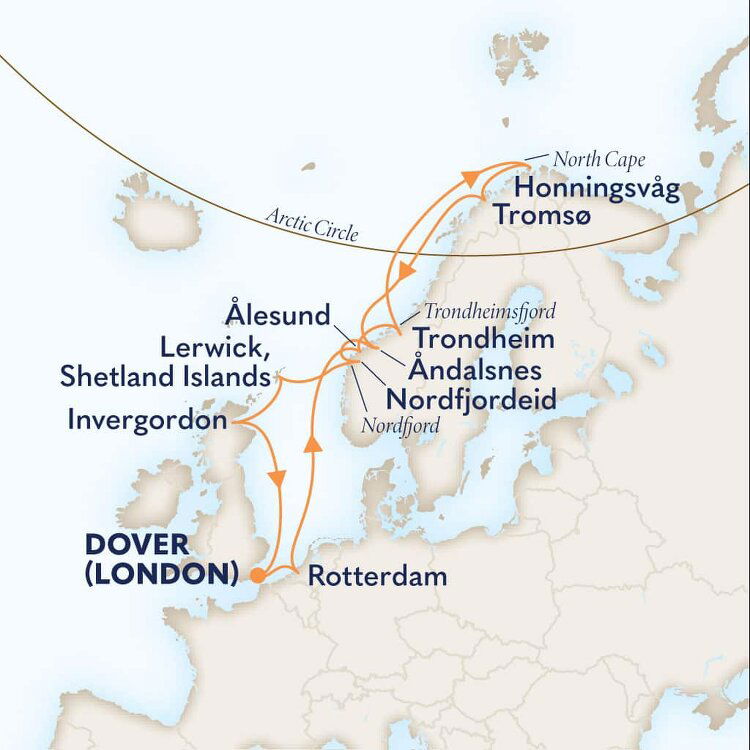 The world’s northernmost village, Honningsvag is the gateway to the North Cape. It is a completely modern fishing harbour set in a land of forests, fjord waters, and crashing waterfalls. The cliffs of the North Cape are perched 1,000 feet above the Arctic Ocean and provides a lookout over a limitless panorama.