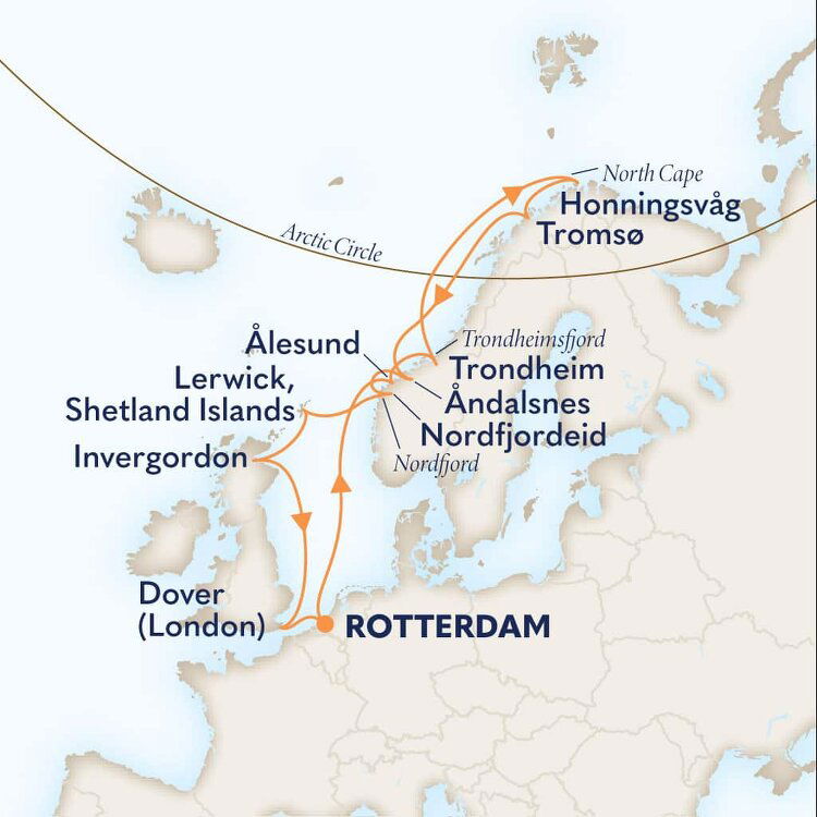 The world’s northernmost village, Honningsvag is the gateway to the North Cape. It is a completely modern fishing harbour set in a land of forests, fjord waters, and crashing waterfalls. The cliffs of the North Cape are perched 1,000 feet above the Arctic Ocean and provides a lookout over a limitless panorama.