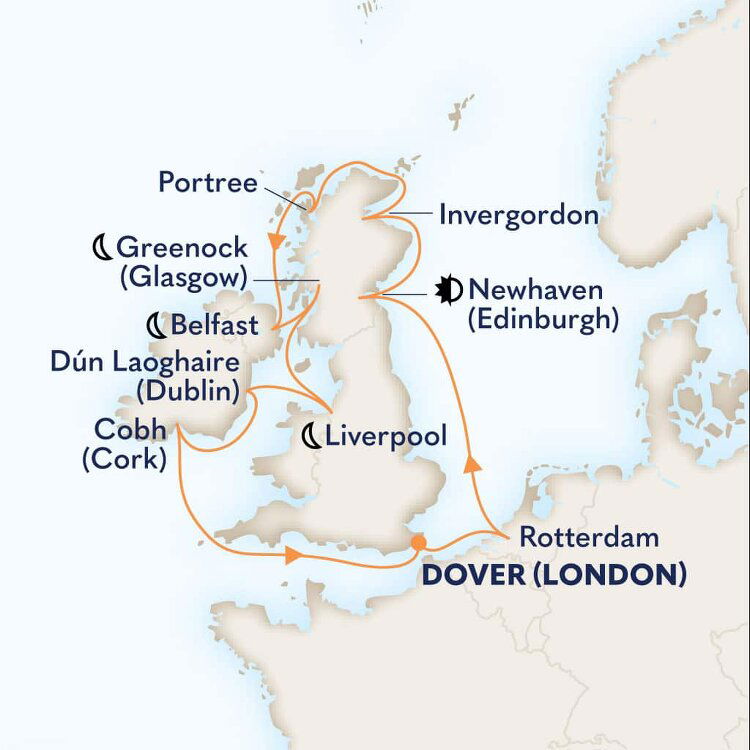 Known as the 'Gateway to England', the southeastern town of Dover is the main transit port between the two sides of the English Channel. This quaint and uniquely British town is famous for its impressive white cliffs, which have inspired many a poet and playwright. Ships will dock at the Dover Cruise Terminal.