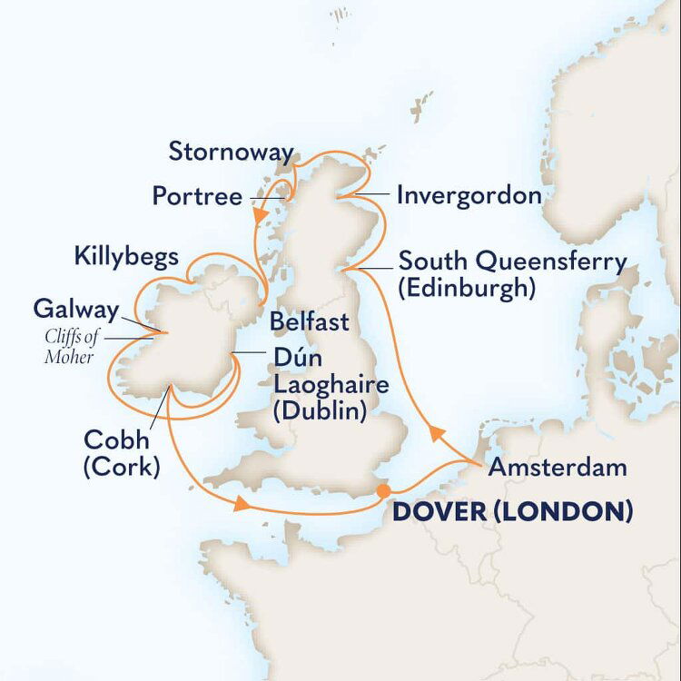Known as the 'Gateway to England', the southeastern town of Dover is the main transit port between the two sides of the English Channel. This quaint and uniquely British town is famous for its impressive white cliffs, which have inspired many a poet and playwright. Ships will dock at the Dover Cruise Terminal.
