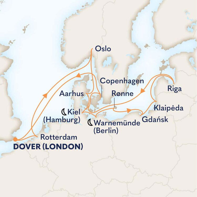 Known as the 'Gateway to England', the southeastern town of Dover is the main transit port between the two sides of the English Channel. This quaint and uniquely British town is famous for its impressive white cliffs, which have inspired many a poet and playwright. Ships will dock at the Dover Cruise Terminal.