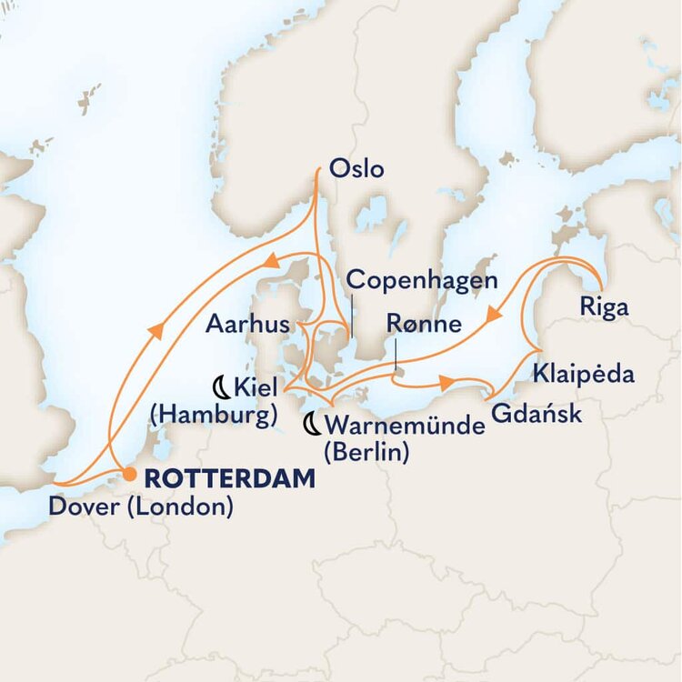 Known as the 'Gateway to England', the southeastern town of Dover is the main transit port between the two sides of the English Channel. This quaint and uniquely British town is famous for its impressive white cliffs, which have inspired many a poet and playwright. Ships will dock at the Dover Cruise Terminal.