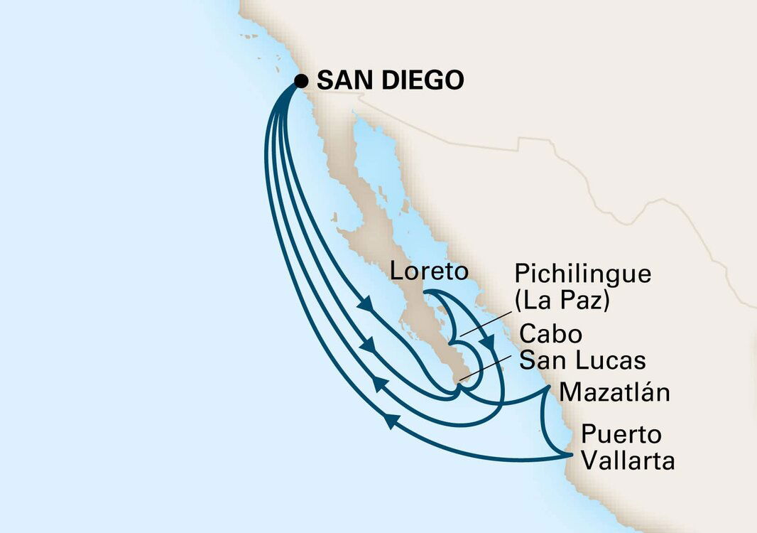 Pichilingue, located in Baja California Sur, Mexico, serves as the gateway for cruises arriving at La Paz. The port is about 17 kilometres (around 10.5 miles) from downtown La Paz, approximately a 25-minute drive. Visitors can arrange transport to take them from the port to explore the city and its surroundings.
