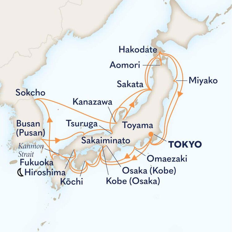 Known for its ancient temples and beautiful beaches, Fukuoka is the capital of and gateway to Kyushu Island. Boasting Japan’s heady cocktail of hot springs, gourmet food, abundant nature and spiritual history, Kyushu Island has all the advantages of the mainland, while enjoying its own identity. Ships will dock at Hakata Port.