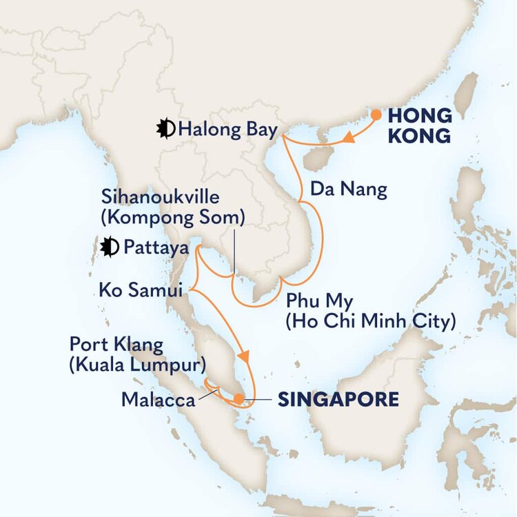 Malaysia’s dynamic capital is a melting pot of skyscrapers, Islamic architecture and British Colonial buildings offering a futuristic cityscape with an enduring nod to yesteryear. Home to some of Asia’s most opulent shopping malls, Kuala Lumpur’s skyline is dominated by the famous Petronas and Menara Kuala Lumpur Towers. Ships will dock in Port Klang.