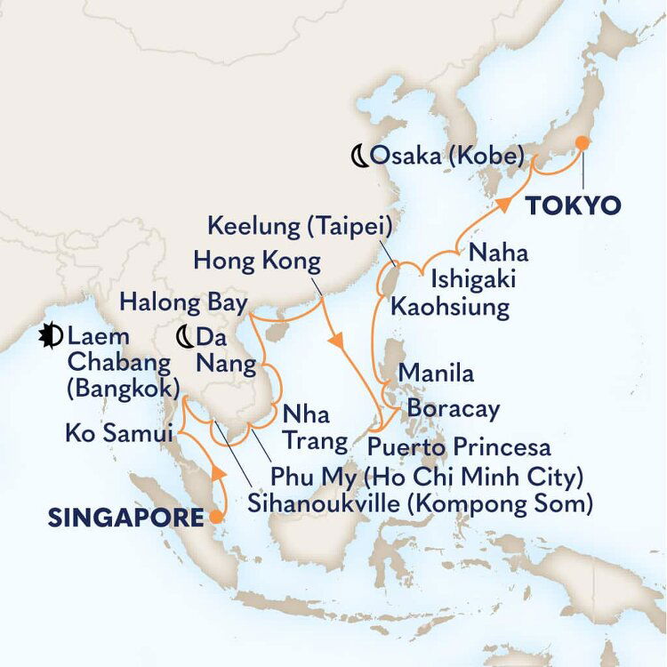 In Bangkok, the old meets the new: Skyscrapers contrast ornate Thai temples, high-end cocktail bars lie around the corner from bustling stalls of street-food vendors, and tuk tuk rickshaws pedal beside cars on the busy streets. Ships will dock in Laem Chabang about a 2 hour drive from Bangkok.