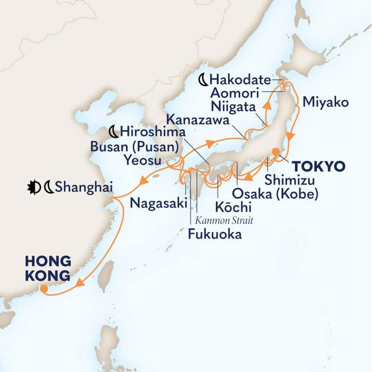 Known for its ancient temples and beautiful beaches, Fukuoka is the capital of and gateway to Kyushu Island. Boasting Japan’s heady cocktail of hot springs, gourmet food, abundant nature and spiritual history, Kyushu Island has all the advantages of the mainland, while enjoying its own identity. Ships will dock at Hakata Port.