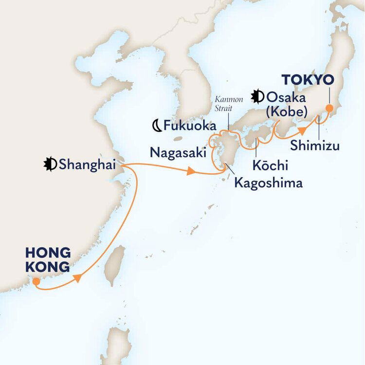 Known for its ancient temples and beautiful beaches, Fukuoka is the capital of and gateway to Kyushu Island. Boasting Japan’s heady cocktail of hot springs, gourmet food, abundant nature and spiritual history, Kyushu Island has all the advantages of the mainland, while enjoying its own identity. Ships will dock at Hakata Port.