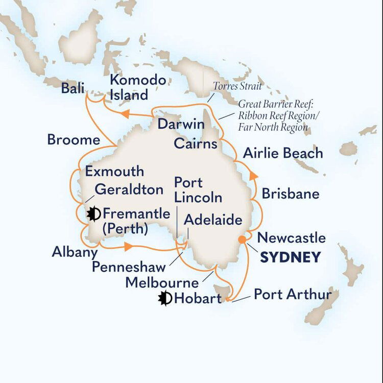 Adelaide combines the charm of a picturesque country town with lively cosmopolitan offerings. Downtown is compact and easily walkable, with wide, tree-lined boulevards, superb Victorian and Edwardian architecture, tranquil parks and the highest number of restaurants per capita of any city in Australia. Ships will dock at the Outer Harbor of Port Adelaide.