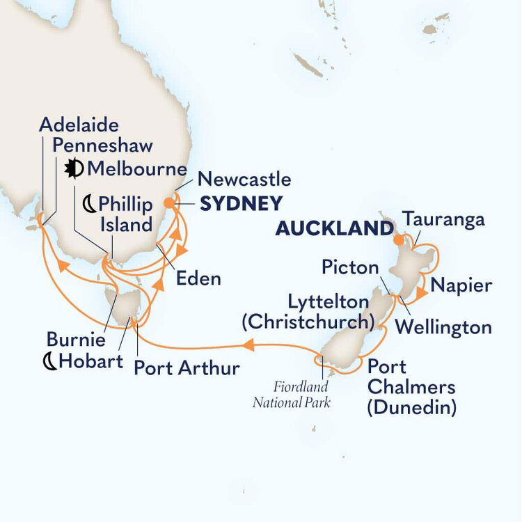 Set in Twofold Bay on the Sapphire Coast, Eden is known for the migrating whales that cruise through its waters between May and November. While the whales are now protected and cherished here, the town was initially founded as a whaling centre and has many fascinating stories to tell. Ships will anchor offshore and tenders are provided to the port.