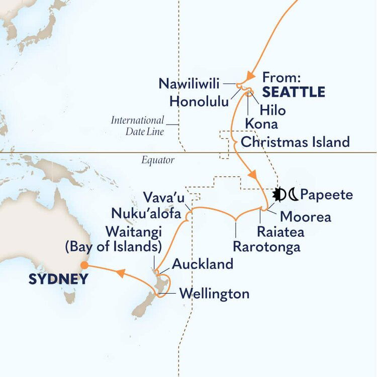 The island's unique geography makes Moorea one of French Polynesia's most breathtaking islands. Eight mountain peaks carpeted in lush vegetation rise from a translucent lagoon and two tranquil bays. Ships will anchor offshore and tenders will be provided to the shore.