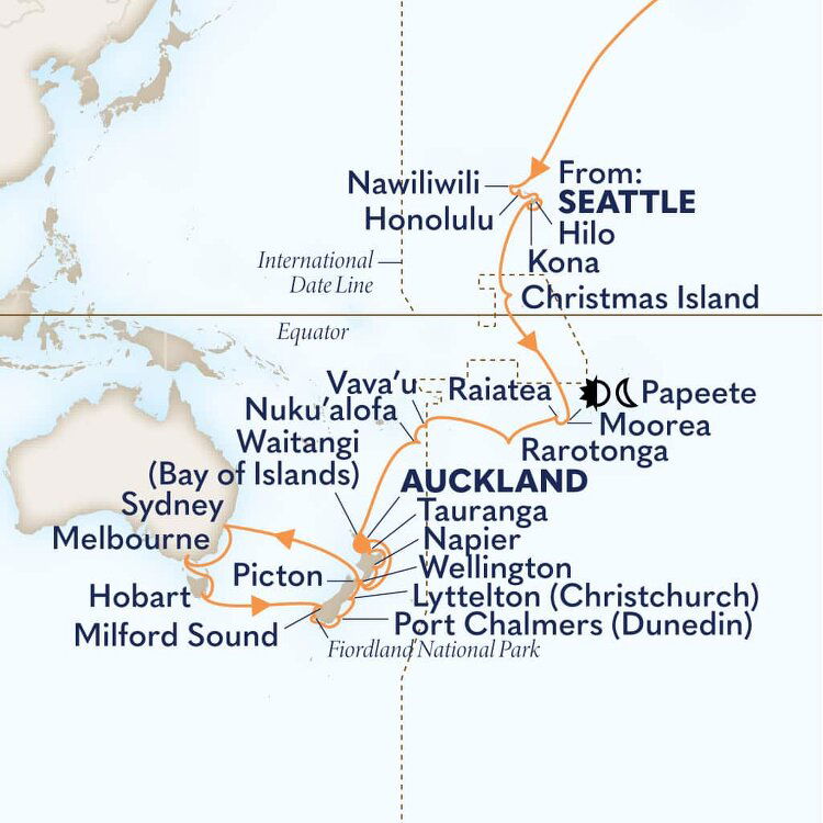 In downtown Auckland you can enjoy world-class dining, shopping, and sights. If you've a mind to explore, visit the island volcano of Rangitoto, or head to Waiheke, known as 'the island of wine' each are within a 40 minute ferry ride of your port.