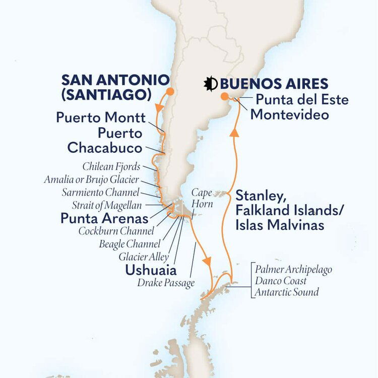 Located at the southernmost end of South America, Ushuaia is is often called a doorway to Antarctica. The town boasts incredible natural beauty through its national parks like the Tierra del Fuego National Park with cultural institutions like the Museo del Fin del Mundo, or the End of the World Museum. Ships will dock at this port.