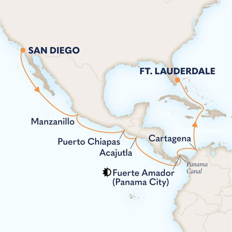 Fuerte Amador, located at the Pacific entrance to the Panama Canal, is a man-made peninsula extending into the Pacific Ocean. The one-mile (1.6km) causeway is formed by connecting four small islands with rocks from the canal, and hosts shops and restaurants around a marina which serves as a tender dock to visiting ships. Offering panoramic views of Panama City's skyline, the causeway is also home to the Smithsonian Institute of Tropical Research. The tender dock is conveniently located, providing easy access to Panama City with a transfer time of around 25 minutes (14km/8.5mi distance).