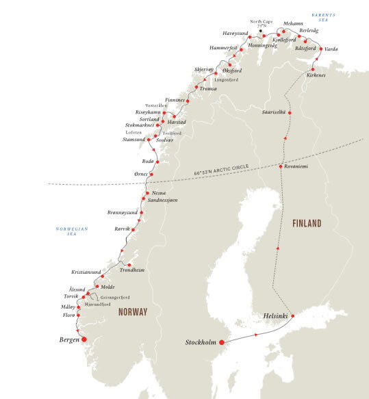 Crossing the Arctic Circle is an important ‘rite of passage', and today, we'll celebrate the occasion on deck with a taste of Arctic tradition – a spoonful of Norwegian cod liver oil. Leaving the Polar region means saying goodbye to the Midnight Sun, but you'll still see incredibly long days throughout the rest of the summer voyage.