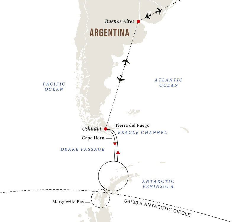 Your adventure begins with an early morning flight to Ushuaia, where we'll meet your hybrid-powered expedition ship, specially designed for exploring polar waters.