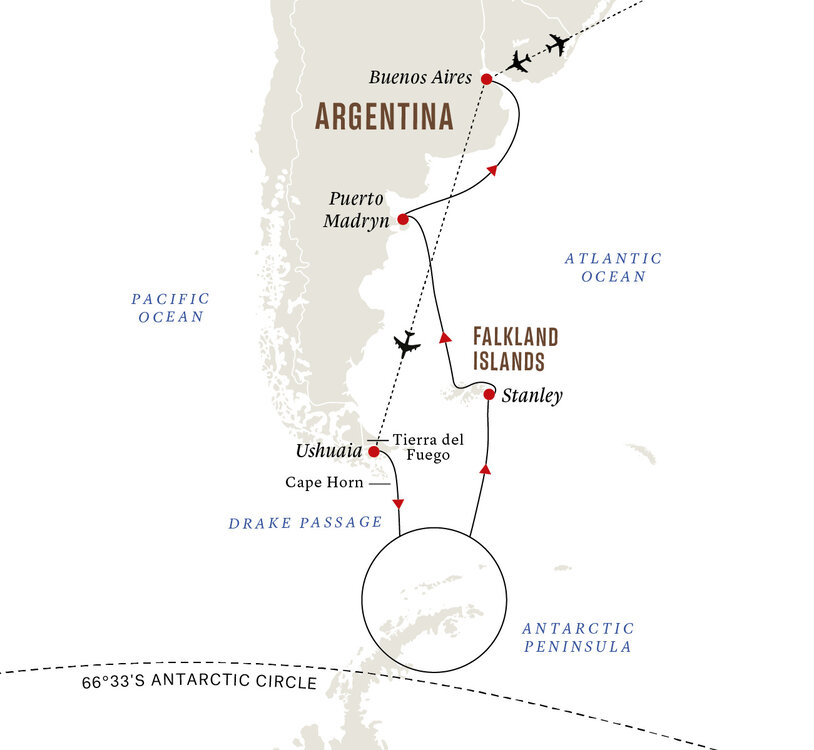 Your journey begins with a flight from Australia to Buenos Aires. An overnight stay in Buenos Aires is the ideal way to start your Antarctic adventure.