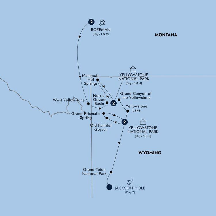 Conclude your journey in Grand Teton National Park to marvel at the stunning mountain peaks as your Travel Director reveals all the best vistas in this wildlife haven. Cap off your adventure with a lunch in the private Members Only lounge of the National Wildlife Art Museum. In the late afternoon, bid farewell to the national parks to transfer to Jackson Hole Airport arriving at 2:00 PM. Please note this time when booking flights or extend your stay in Jackson. (B/L)