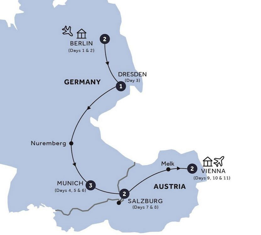 In Nuremberg witness the charming blend of stone and timbered dwellings in the Old Town as well as the massive ramparts. Perhaps shop for delicious Lebkuchen (gingerbread)? Continue across the Danube to Munich, the capital of the state of Bavaria, lying near the foot of the German Alps. At night, perhaps consider dinner at one of Munich's famous ‘Bier Kellers'? (B) Stay: The Westin Grand, Munich