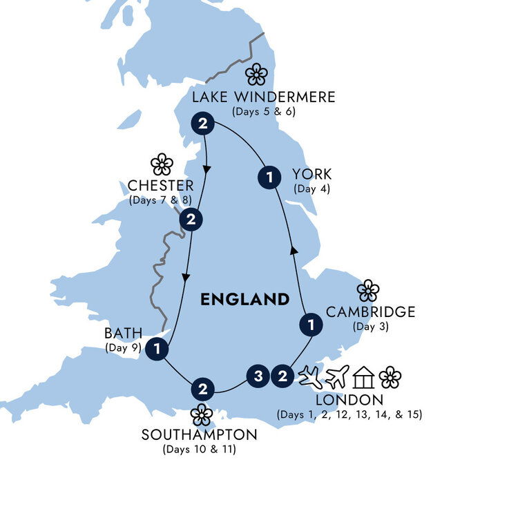 This morning we head to the world famous RHS Chelsea Flower Show. Be amazed by the extensive displays of show gardens and magnificent floral displays and pick up tips from the experts, before returning to your hotel in the afternoon. (B)