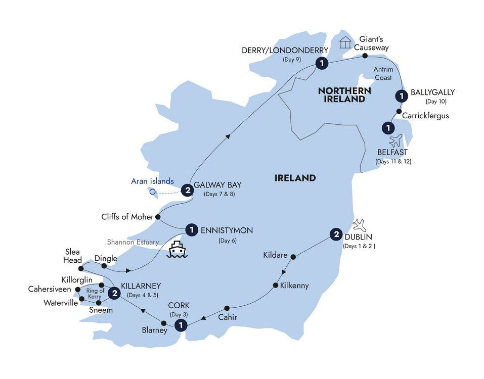 Spend a day at leisure to relax and enjoy Galway. Perhaps join an Optional Experience to the Aran Islands? A genuine highlight of the Wild Atlantic Way. With their cliffs and spectacular coastal views, the islands are a true Irish experience. (B)