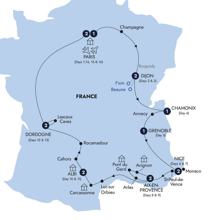 Today, bid farewell to your journey through the French countryside as you transfer to the airport.