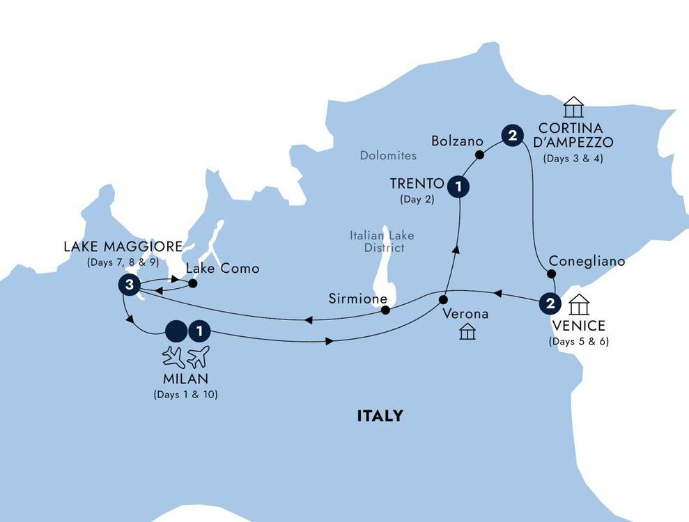Your journey draws to a close in the morning and transfers arrive at Milan's Malpensa Airport. (B)